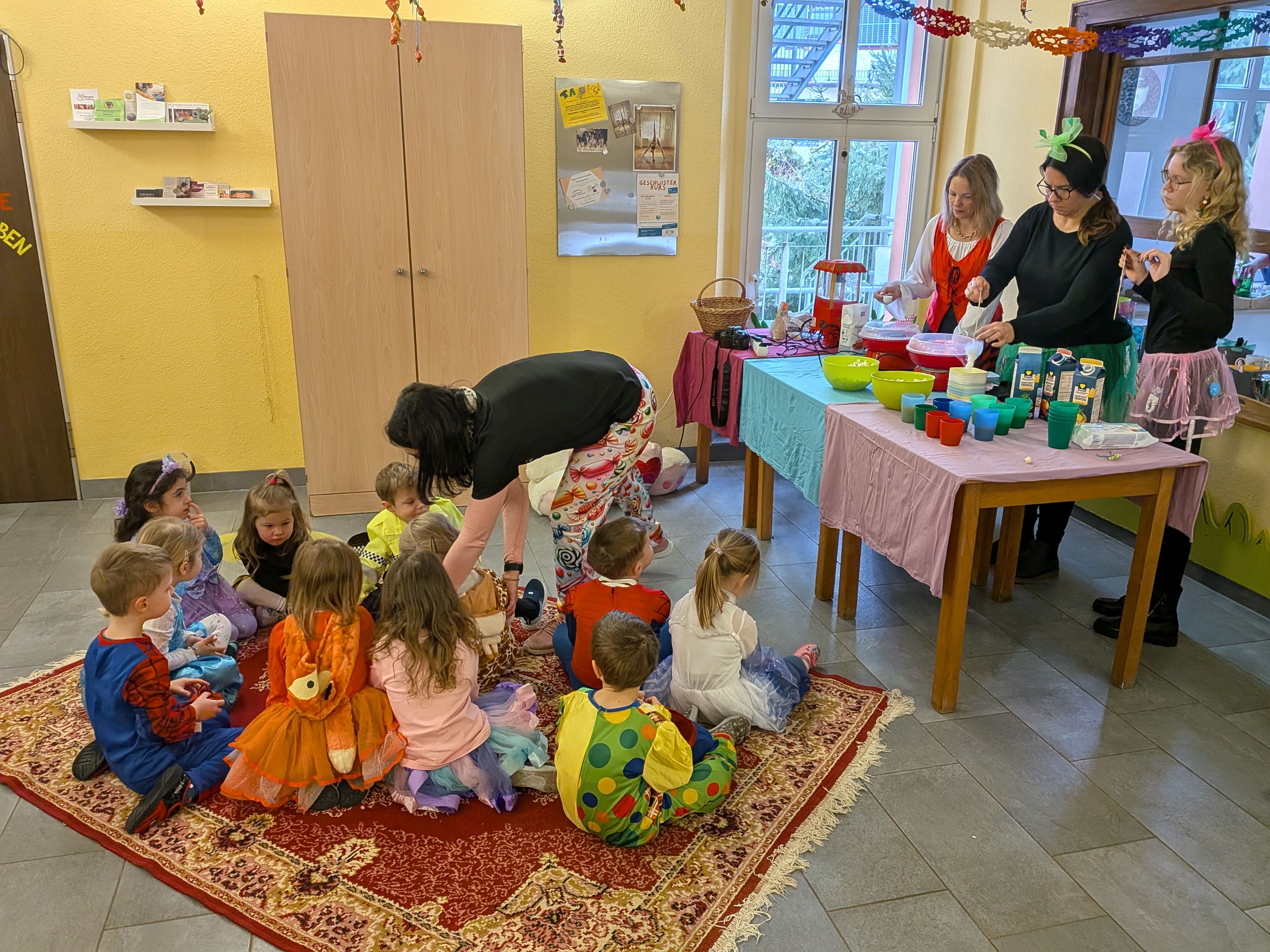 Unser Haus war mit allerhand Bonbons, Gummibärchen und anderen Leckereien geschmückt. Neben der besonderen Deko waren Popcorn und Zuckerwatte zum Naschen die Highlights. Nach der Vorstellung aller Kostüme im Foyer, standen auch lustige Spiele auf dem Programm: unteranderem Wackelpuddingwettessen mit Messer und Gabel, Nudelbilderlegen, Würstchen vom Galgen essen und vieles mehr. Die Party war ein voller Erfolg, mit viel Spaß, Lachen und süßen Leckereien – ein unvergesslicher Tag für alle Kinder.