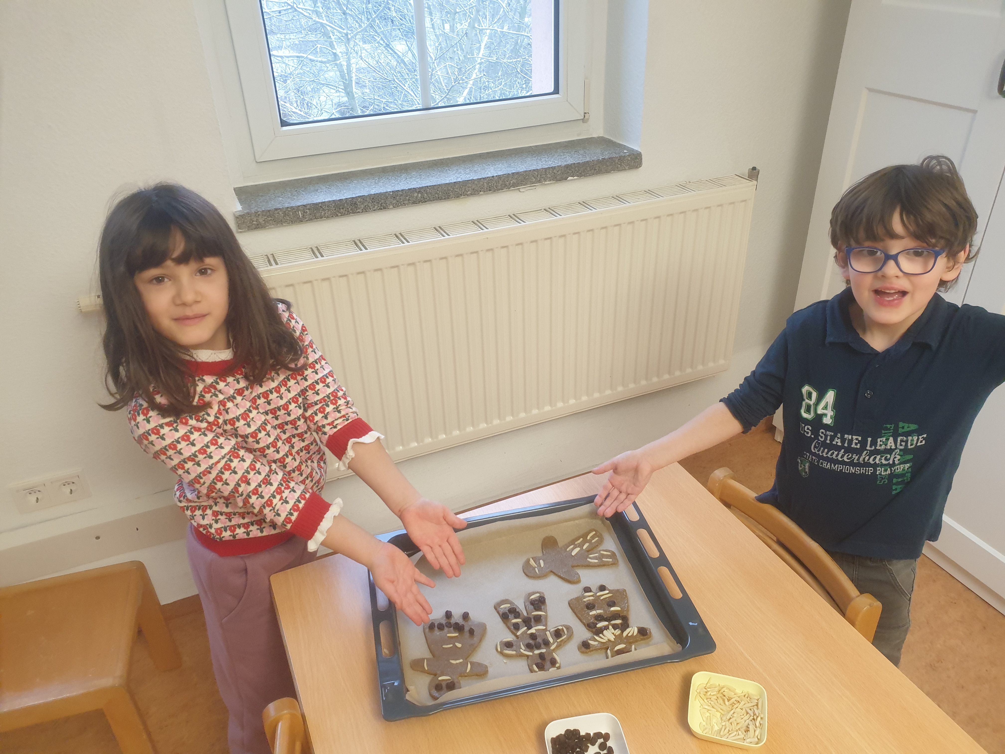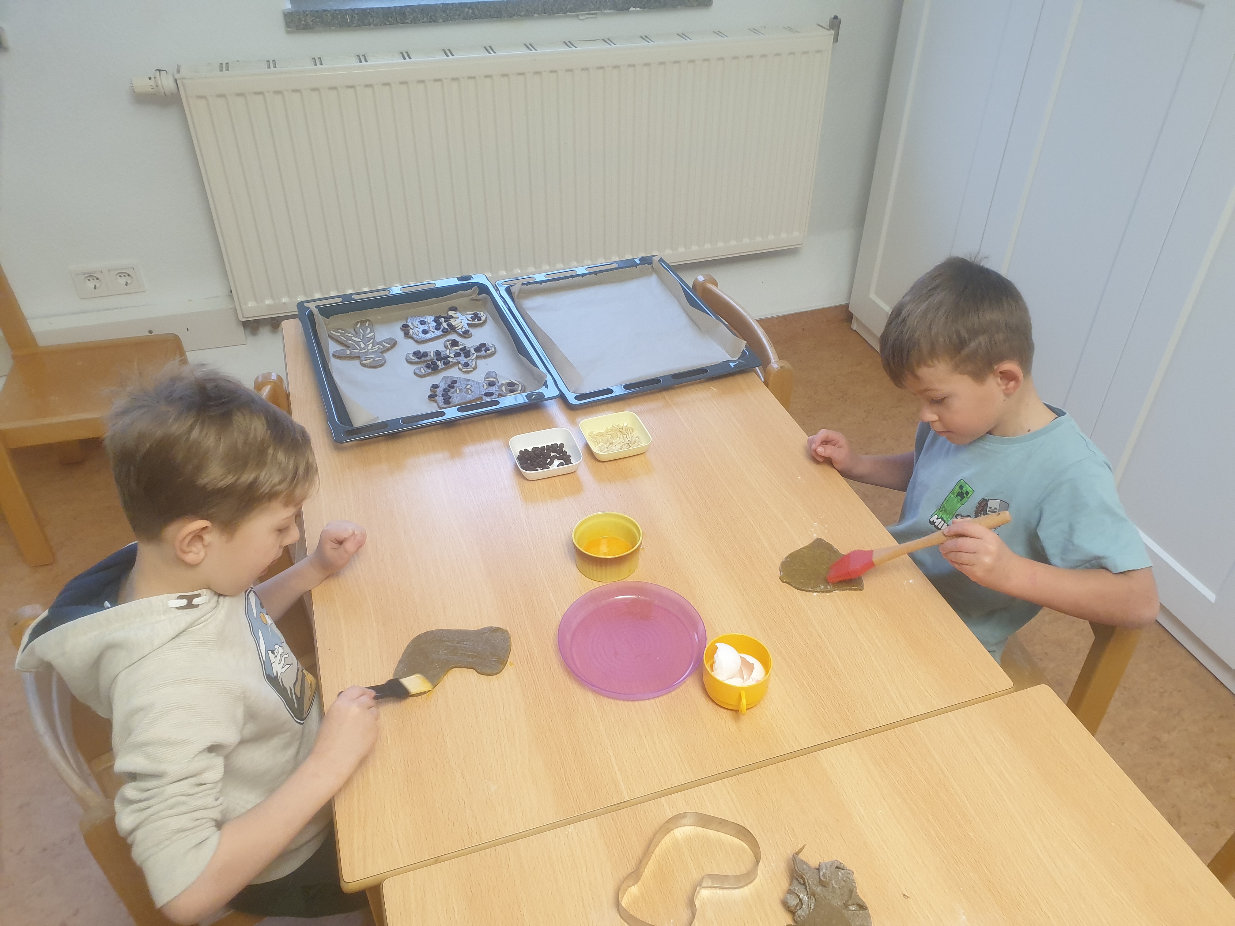 Nachdem die Marienkäfer am Montag Plätzchen und die Hasenkinder am Dienstag Kuchen gebacken hatten, durften am Mittwoch die Kinder der Schmetterlingsgruppe Lebkuchen herstellen.